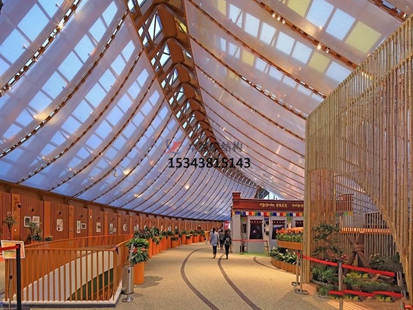 膜結構建筑的一個重要作用就是具有很強的抗壓功能,抵御各種天氣變化,如日曬、雨淋、風雪、臺風等對其壓力的影響,保持建筑物的結構的韌性、結構的穩(wěn)定性。
