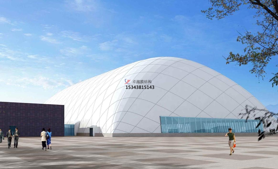 充氣膜體育館是用特殊的建筑膜材做外殼,配備一套智能化的機電設(shè)備在氣膜建筑內(nèi)部提供空氣的正壓,把建筑主體支撐起來的一種建筑結(jié)構(gòu)系統(tǒng)。
