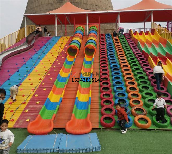 平頂山兒童樂園彩虹滑道遮陽棚生產(chǎn),主要由以下幾個部分組成: