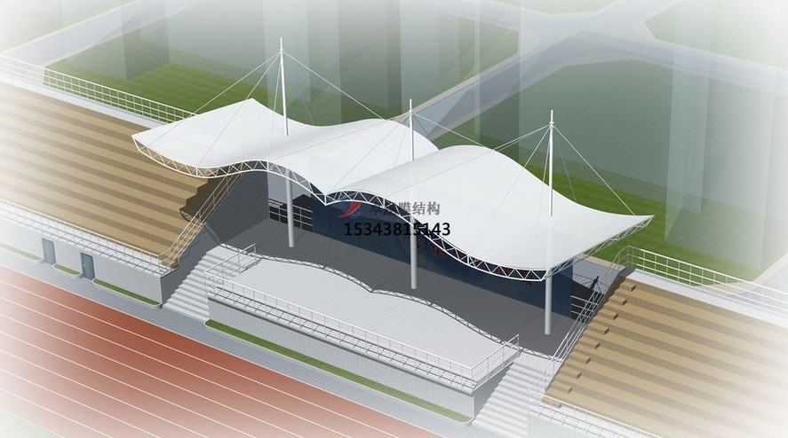 由于自重輕,膜結(jié)構(gòu)遮陽棚工程可以不需要內(nèi)部支撐面大跨度覆蓋空間,這使人們可以更加靈活使用膜結(jié)構(gòu)建筑空間。
