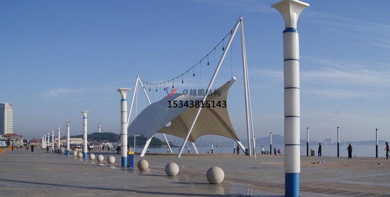 ?。?)PTFE膜材的更大特點(diǎn)是強(qiáng)度高,中等強(qiáng)度的PTFE膜厚度僅0.8mm,但它的拉伸強(qiáng)度已達(dá)到鋼材的水平;而且彈性模量較低,有利于膜材形成復(fù)雜的曲面造型;