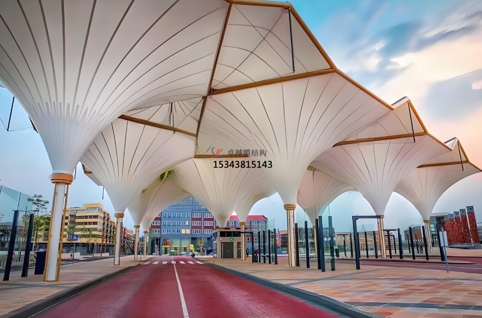 此外,PTFE膜結(jié)構(gòu)的薄膜具有一定的透光性,能夠有效利用自然光線,降低室內(nèi)照明能耗,能夠遮擋紫外線和紅外線,減少太陽(yáng)輻射對(duì)建筑內(nèi)部的熱負(fù)荷,實(shí)現(xiàn)能源的節(jié)約和環(huán)境的保護(hù);而且PTFE膜結(jié)構(gòu)能夠通過不同的張拉和固定方式,創(chuàng)造出各種形態(tài)的建筑設(shè)計(jì)。它可以形成曲線、弧線、折線等多樣化的形狀,滿足建筑師對(duì)于獨(dú)特外觀和創(chuàng)新設(shè)計(jì)的需求。