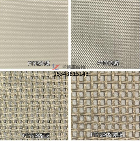 PTFE 網(wǎng)格覆膜:是在 PTFE 網(wǎng)格膜之上增加一層透明膜,如 PTFE、ERT 透明乳膠、ETFE 等,在保持高透光的同時,還能起到防雨防水的作用。
