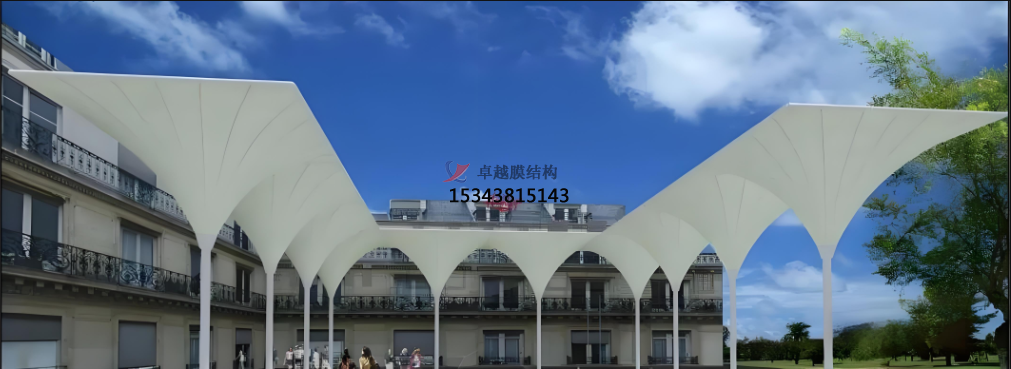 基于這些優(yōu)點,建筑膜材脫穎而出,膜結(jié)構(gòu)被稱為“21世紀的建筑”,應用于大型體育場館、入口廊道、購物場、娛樂場、停車場、展覽會場、植物觀光園等建筑。PVDF膜材是在早期PVC膜基礎上發(fā)展起來,通過表面PVDF涂層工藝的不斷提升,目前膜結(jié)構(gòu)使用中90%以上還是PVDF膜材。近些年貳氧化鈦處理的PVDF膜材在自潔性和使用壽命上又有了進一步提高。