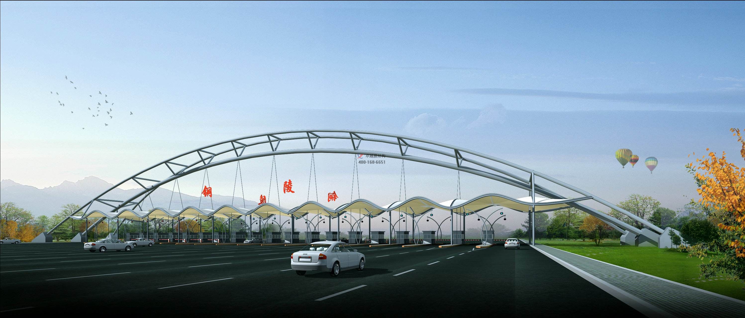 項目結(jié)構(gòu)形式:骨架式膜結(jié)構(gòu)收費站
