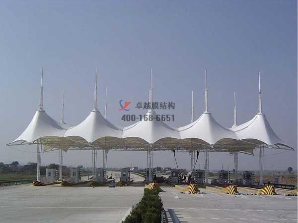 濱州卓越膜結(jié)構(gòu)工程公司是專業(yè)從事收費(fèi)站雨棚,高速高速公路膜結(jié)構(gòu)、高速服務(wù)區(qū)充電站配套雨棚,高速公路服務(wù)區(qū)景觀遮陽棚,高速公路加油站罩棚的專業(yè)廠家,擁有一批國(guó)內(nèi)更早從事膜結(jié)構(gòu)行業(yè)的工程技術(shù)人才,并與濱州地區(qū)各著名設(shè)計(jì)院、大學(xué)都有緊密合作,使用國(guó)際更先進(jìn)的膜結(jié)構(gòu)建筑設(shè)計(jì)軟件、荷載分析軟件、找型裁剪軟件、結(jié)構(gòu)計(jì)算軟件,充分保證了濱州卓越公司在中國(guó)膜結(jié)構(gòu)領(lǐng)域技術(shù)領(lǐng)先性。下面給各位介紹一下我公司在濱州及周邊縣市完工的一批高速公路收費(fèi)站膜結(jié)構(gòu)工程案例。