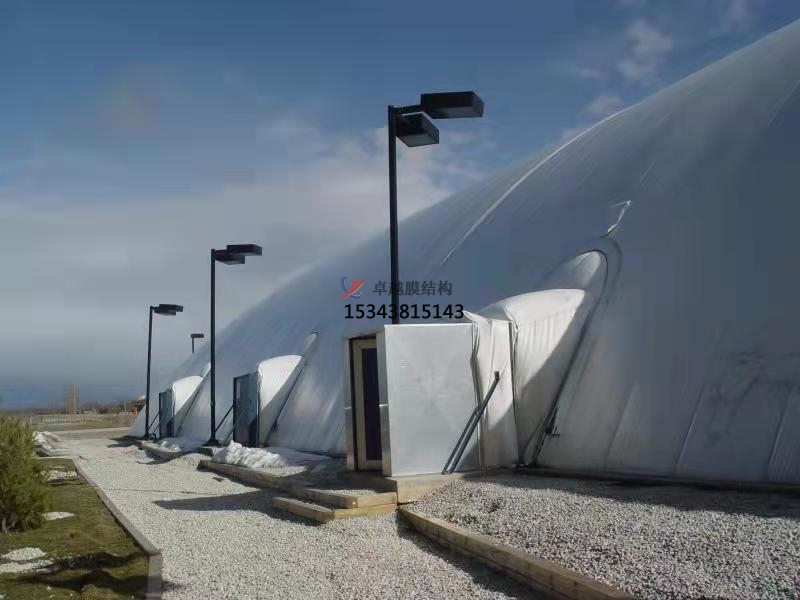 氣膜封閉建筑在我國是一種新興的建筑方式,所謂氣膜全封閉煤場就是用特殊的建筑膜材做外殼,配備一套智能化的機(jī)電設(shè)備在氣膜建筑內(nèi)部提供空氣的正壓,把建筑主體支撐起來的一種建筑結(jié)構(gòu)系統(tǒng)。