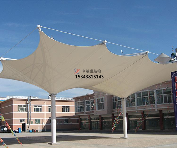 隨著都市現(xiàn)代化步伐的加快,汽車成為任何一個都市不可缺少的交通工具。我國由于汽車工業(yè)高速發(fā)展,城市的汽車擁有量成倍上升,但城市建設(shè)規(guī)劃沒能盡快適應(yīng)這一發(fā)展的要求,常常是車無停放之地。所以在建設(shè)群規(guī)劃時就應(yīng)充分考慮停車場的問題,把停車場的建設(shè)和規(guī)劃當(dāng)成現(xiàn)代城市建設(shè)規(guī)劃的重要組成部分,變得越來越重要。同樣,膜結(jié)構(gòu)在停車場建設(shè)中也擔(dān)當(dāng)重要角色。商業(yè)廣場雨棚搭建的篷布材質(zhì)是膜材,而膜材的更大特點是強度高、耐久性好、防火難燃、自潔性好,不受紫外線影響,使用壽命長,一般15-30年。具有高透光率,透光率為13%,對熱能反射率73%,熱吸收量很少。正是因為這種劃時代的膜材料的發(fā)明,使商業(yè)廣場雨棚搭建成為現(xiàn)代化的永久建筑。