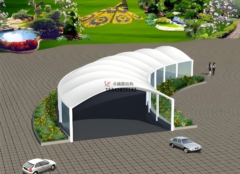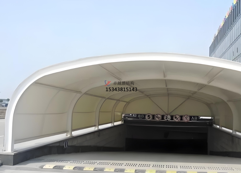 總之,車庫出入口膜結構頂棚是一種集實用、美觀、環(huán)保和經濟效益于一體的創(chuàng)新建筑形式。它的出現(xiàn)為現(xiàn)代建筑的發(fā)展提供了新的思路和方向,相信在未來的建筑領域中,膜結構頂棚將會得到更加廣泛的應用和發(fā)展。