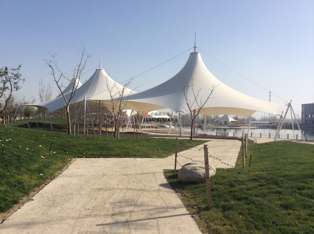其次是景觀膜結(jié)構(gòu)遮陽棚頂部遮陽防雨頂棚板選用白色(其他色彩可選擇)膜布,與車棚骨架用鍍鋅扁鐵壓好,燕尾絲固定卡死,一方狂風對車棚的威脅。