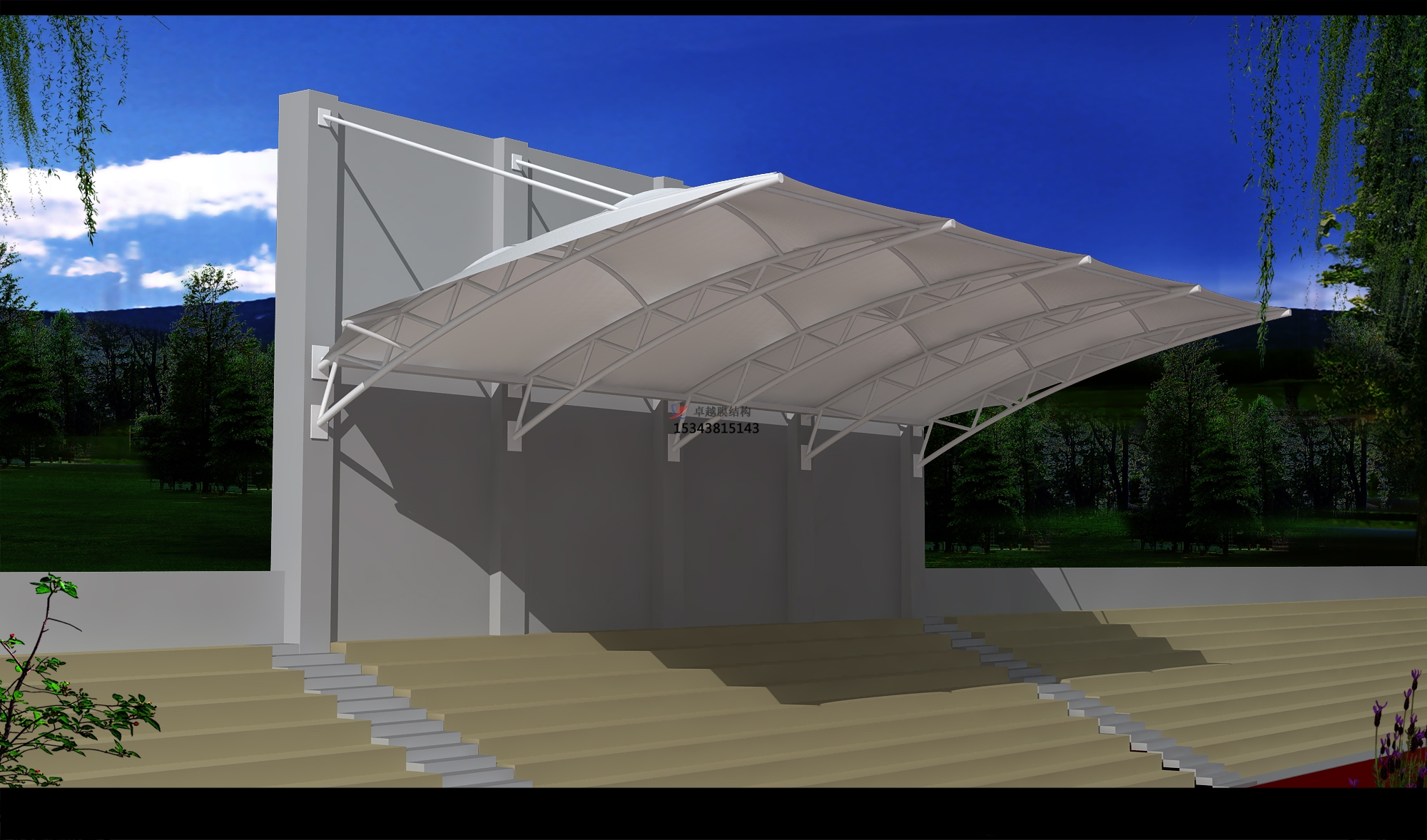 1、千陽縣職業(yè)中專膜結(jié)構(gòu)看臺雨篷/主席臺/舞臺安裝雨棚