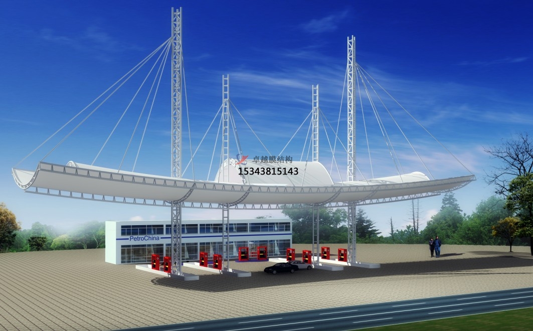 膜結(jié)構(gòu)加油站加氣站中運(yùn)用的膜資料具有優(yōu)異的阻燃性和耐高溫性,能夠很好地滿足防火要求。因?yàn)樵摻Y(jié)構(gòu)自重輕、結(jié)構(gòu)靈敏、變形才能大,具有杰出的抗震性能。施工周期短的薄膜切割。分體成型、骨架的鋼結(jié)構(gòu)和鋼索在工廠加工制作,只需現(xiàn)場(chǎng)組裝,施工周期比傳統(tǒng)加油站加氣站短。