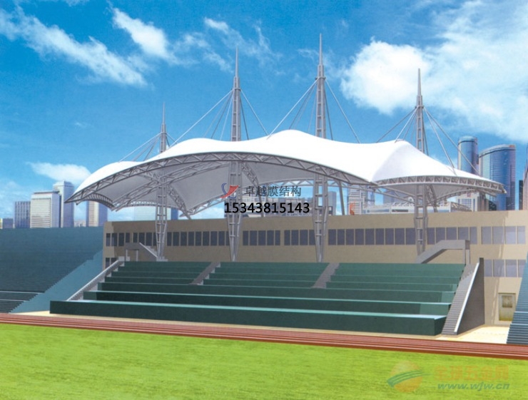 張拉膜看臺主要用于各類地方體育場主席臺雨棚,各類學(xué)校體育場看臺雨棚遮蓋,我公司是國內(nèi)較早從事大懸挑張拉膜結(jié)構(gòu)看臺設(shè)計施工的專業(yè)廠家,下面介紹一下我們在昆明市周邊縣市完工的一些張拉膜看臺設(shè)計施工案例,我公司先后在張家口市周邊承接了昆明市第八中學(xué)看臺雨棚、昆明市第三中學(xué)看臺罩棚、昆明市第十四中學(xué)張拉膜看臺遮陽棚張拉膜看臺遮陽棚等設(shè)計施工項目,簡介如下:
