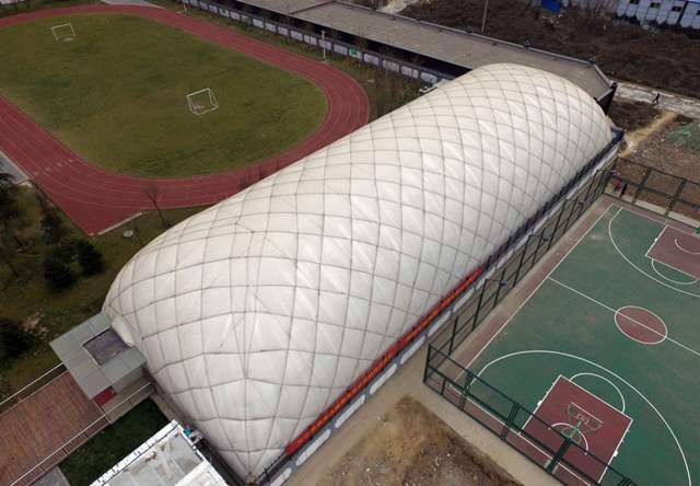 4. 普通的氣膜沒(méi)有鋼纜或者只有縱橫鋼纜的加固,抗風(fēng)雪的能力弱,事故率高,不能作為永久建筑使用;只有斜向網(wǎng)狀鋼纜系統(tǒng),可以確保氣膜的抗風(fēng)雪性能,也是好的可作為永久建筑使用的氣膜。