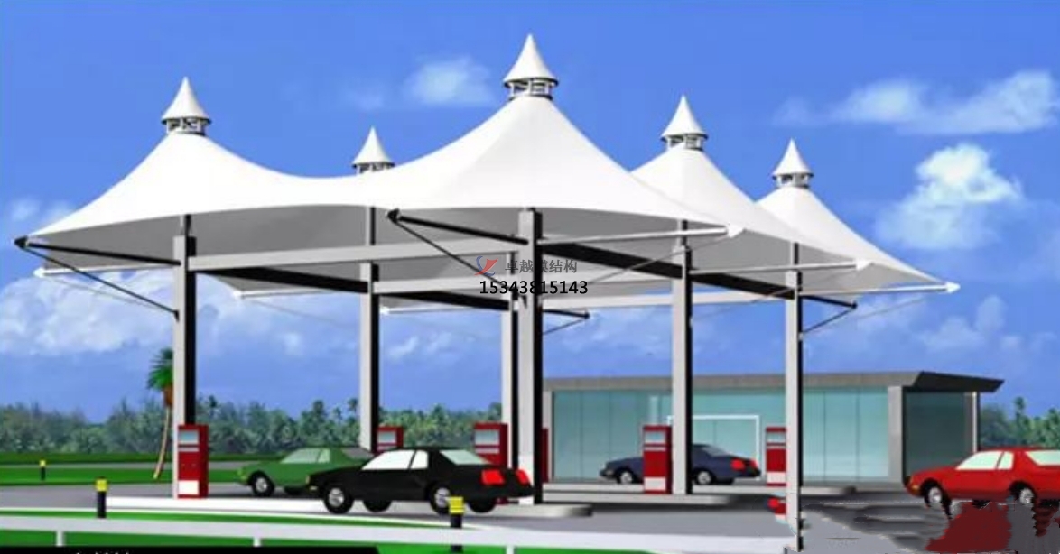 加油站膜結(jié)構(gòu)憑借其顯著區(qū)別與其他結(jié)構(gòu)的獨(dú)特外形,能迅速的抓住顧客的眼球,瞬時拉近與顧客的距離。