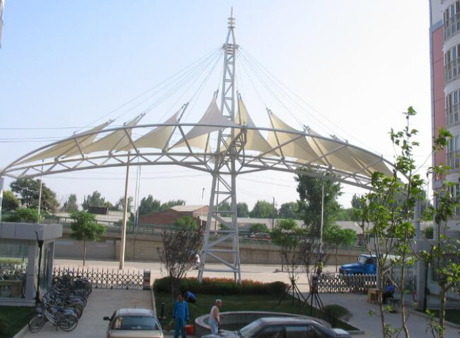 景觀張拉膜以其輕盈飄逸的造型,柔美并帶有力量的曲線和大跨度和大空間的鮮明個性和標識性,應(yīng)用于城市小品設(shè)計中,膜結(jié)構(gòu)景觀把人們帶入五彩繽紛,千姿百態(tài)的世界。以人為本,先天本性相合已是現(xiàn)代建筑環(huán)境學(xué)遵循的宗旨,是現(xiàn)代化城市建設(shè)必須遵守的原則。廣泛應(yīng)用于小區(qū)園林景觀張拉膜,公園膜結(jié)構(gòu),廣場張拉膜等各個地方。