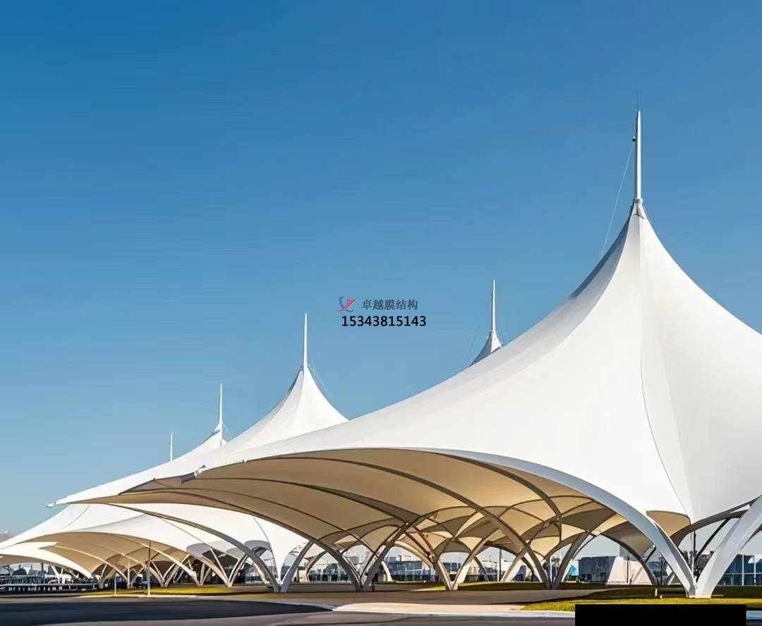 在各大交通樞紐,諸如機(jī)場(chǎng)、火車站的站前廣場(chǎng),膜結(jié)構(gòu)雨棚的設(shè)計(jì)既便利了旅客出行,又以其醒目的形態(tài)有效引導(dǎo)了人流。以北京首都國(guó)際機(jī)場(chǎng)的T3航站樓為例,其前方的巨大膜結(jié)構(gòu)雨棚宛如一只振翅欲飛的鯤鵬,氣勢(shì)恢宏。它不僅滿足了實(shí)際使用需求,更成為機(jī)場(chǎng)一道別具一格的風(fēng)景線,給過(guò)往旅客留下了難以忘懷的印象。