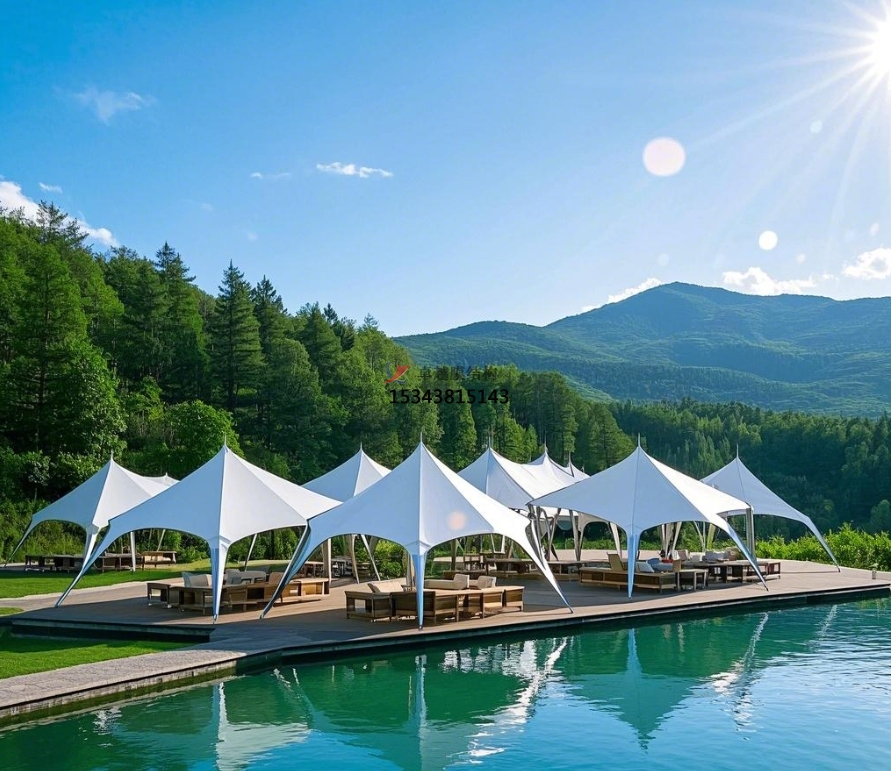 帳篷酒店膜結(jié)構(gòu)在各類旅游場景中廣泛應(yīng)用。在山地旅游景區(qū),膜結(jié)構(gòu)帳篷可依山勢而建,巧妙融入自然山林景觀,為游客提供親近山林、聆聽鳥鳴的住宿體驗;海濱度假勝地,帳篷酒店膜結(jié)構(gòu)憑借其輕盈造型與抗風(fēng)性能,矗立在沙灘旁,讓游客伴著海浪聲入眠;在草原旅游區(qū),大型膜結(jié)構(gòu)帳篷酒店可作為綜合性住宿場所,內(nèi)部設(shè)置多個房間與公共區(qū)域,既能滿足游客住宿需求,又能舉辦篝火晚會等特色活動,豐富游客的草原之旅。