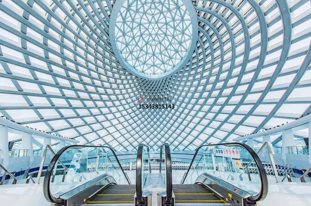 宜賓高鐵站在渝昆高鐵宜賓站站前交通樞紐基礎(chǔ)設(shè)施及歸納配套建設(shè)項(xiàng)目中,利用 etfe 膜結(jié)構(gòu)天幕雨棚連接車站、商業(yè)歸納體和城市綠芯公園等主要功能區(qū)域。整個(gè)天幕及天橋以鋼結(jié)構(gòu)為基礎(chǔ),天幕框架結(jié)構(gòu)選用鋼結(jié)構(gòu)或鋁合金作為承重結(jié)構(gòu),頂部掩蓋 etfe 資料和光伏玻璃,并調(diào)配流動(dòng)燈光效果,完美展現(xiàn)竹和流水的規(guī)劃理念。該項(xiàng)目鋼結(jié)構(gòu)總用鋼量約 1.2 萬(wàn)噸,屋面選用 etfe 通明資料,在確保規(guī)劃效果簡(jiǎn)練與形狀優(yōu)美的一起,也為過(guò)往行人營(yíng)建出天然舒適的開(kāi)放空間 。