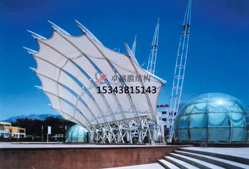以上四種基本形式僅僅是為了加深理解所作的一種簡單歸納,實(shí)際膜結(jié)構(gòu)景觀的形狀遠(yuǎn)非如此簡單,甚至可以說是鮮有雷同;即便是這四種基本形式本身也可以有多種多樣的變形。在實(shí)際設(shè)計(jì)時(shí),切不可以拘泥于其中,而應(yīng)把握膜結(jié)構(gòu)景觀自然、流暢的精髓,創(chuàng)造出更多的新穎、別致的膜結(jié)構(gòu)景觀作品。