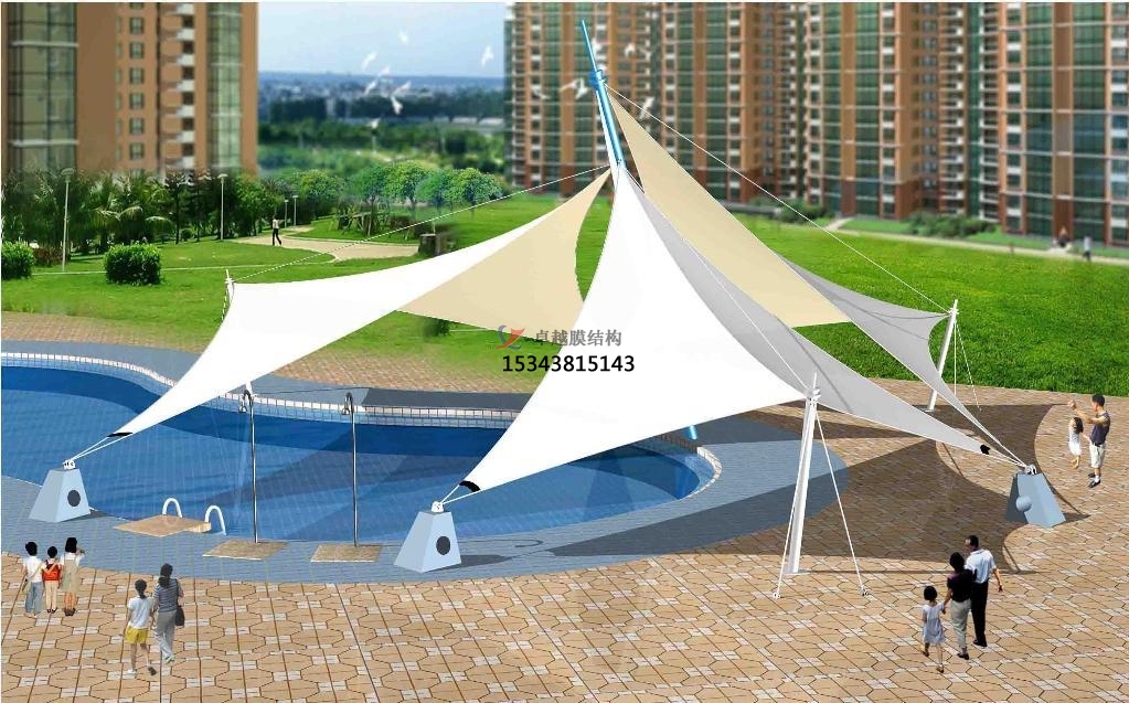 張拉膜景觀膜面采用的主要有是聚四氟乙烯涂面PVC聚酯纖維類薄膜,材料主要指標(biāo)應(yīng)包括單位重量、厚度、力學(xué)性能、光學(xué)性能、防火性能及耐久性等。