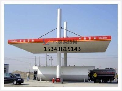 目前許多加油站和收費(fèi)站的頂棚都是選擇膜結(jié)構(gòu)來建造的,因其擁有工期短,壽命長(zhǎng),造型美觀,自潔性強(qiáng),防火等優(yōu)點(diǎn)。
