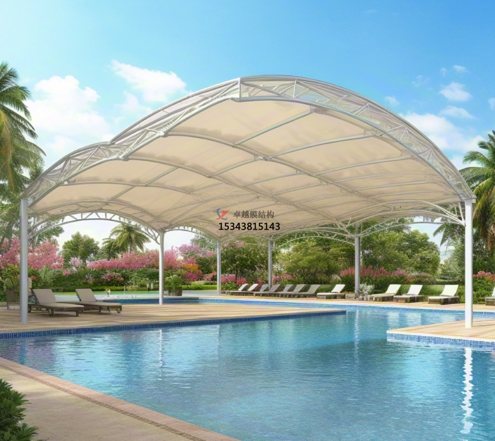 隨著現(xiàn)代建筑設(shè)計理念的不斷發(fā)展,游泳池膜結(jié)構(gòu)遮陽棚作為一種新型的建筑形式,正逐漸成為眾多游泳池的標(biāo)配。這種遮陽棚不僅為泳池提供了實用的遮陽擋雨功能,更以其獨特的造型和美觀性,為泳池增添了一道亮麗的風(fēng)景線。