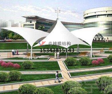 2. 藝術(shù)性:除了一般雨蓬不可比擬的實(shí)用、耐用、遮風(fēng)擋雨的功能外,張拉膜景觀雨蓬更是一座雕塑,一件藝術(shù)品,給人美的視覺(jué)享受。其柔美,其曲線,其剛?cè)岵?jì),其豐富造型,其潔白無(wú)瑕,讓人眼前一亮,回味悠長(zhǎng)。