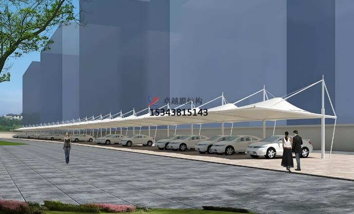 有獨(dú)特的藝術(shù)美感,為城市增添亮麗風(fēng)景線(xiàn)。高強(qiáng)度膜材配合張拉技術(shù),使車(chē)棚抵御風(fēng)雨能力強(qiáng),膜材料還具有高強(qiáng)度、耐候性、防火性和自潔性,有的采用永久性膜材,使用壽命可達(dá)25年