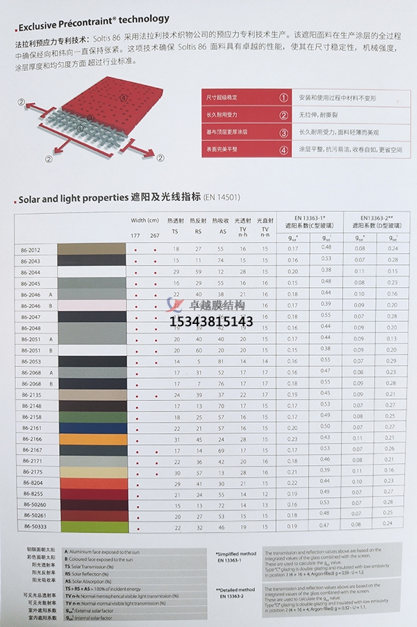 法拉利膜材十多年來,法拉利(PVDF)表面處理的復合膜材被應用在全世界重要的織物建筑工程中?,F(xiàn)在,第代膜材再次確認了這一出眾材料性能的更新發(fā)展。法拉利研發(fā)了第代材料正是為了滿足建筑師和業(yè)主在新世紀之初對于織物建筑提出的要求。這一 全新的膜材得益于更新的科研技術,即將PVDF和硬化介體完美地結合。這種特殊的結合明顯地提高了材料的機械強度、使用壽命,并能長期保持織物建筑的原始 美觀。第代膜材在積累了10多年的經(jīng)驗的基礎上,可以提供專業(yè)保證。法拉利現(xiàn)在能夠根據(jù)要求和每個項目的具體情況,提供12年質量保證 (PRECONTRAINT702除外)。