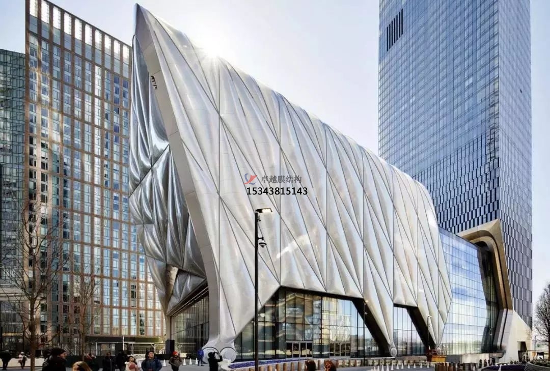 在哈德遜碼頭上,全新的跨界“棚屋”藝術(shù)中心(The Shed)于2019年4月5日對(duì)外開(kāi)放。藝術(shù)中心由著名建筑公司 Diller Scofidio+Renfro 和 Rockwell 集團(tuán)合作設(shè)計(jì),打造了覆蓋著ETFE氣枕膜材料的120英尺的伸縮式外殼,能夠通過(guò)滾輪將建筑延伸至“棚屋”的戶外廣場(chǎng),營(yíng)造更開(kāi)闊的半戶外空間,旨在創(chuàng)建世界上最具靈活性的文化機(jī)構(gòu)。