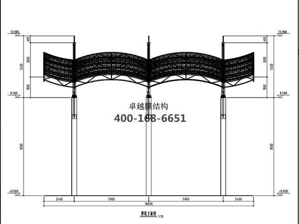 我公司設(shè)計人員的周口盛和小學(xué)膜結(jié)構(gòu)看臺/頂棚工程設(shè)計方案得到甲方確認,部分設(shè)計圖紙如下:
