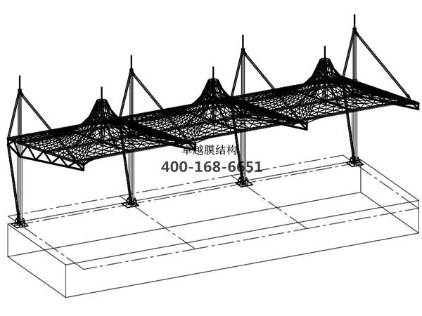 本工程膜材采用白色高端國產(chǎn)星益達PVDF高自潔環(huán)保建筑膜材,鋼結構采用更好的標準Q235B鋼材,表面采用酚醛底漆處理,面漆采用白色鋼結構專用快干磁漆。