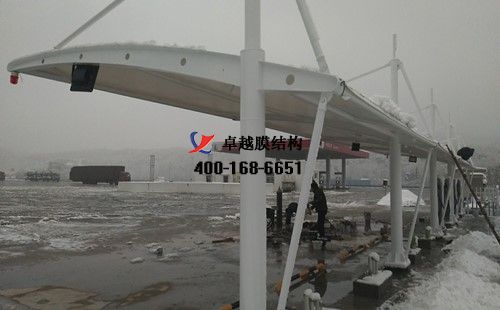 信陽(yáng)羅山服務(wù)區(qū)車棚/頂棚膜結(jié)構(gòu)、鋼結(jié)構(gòu)設(shè)計(jì)、加工、運(yùn)輸、安裝。
