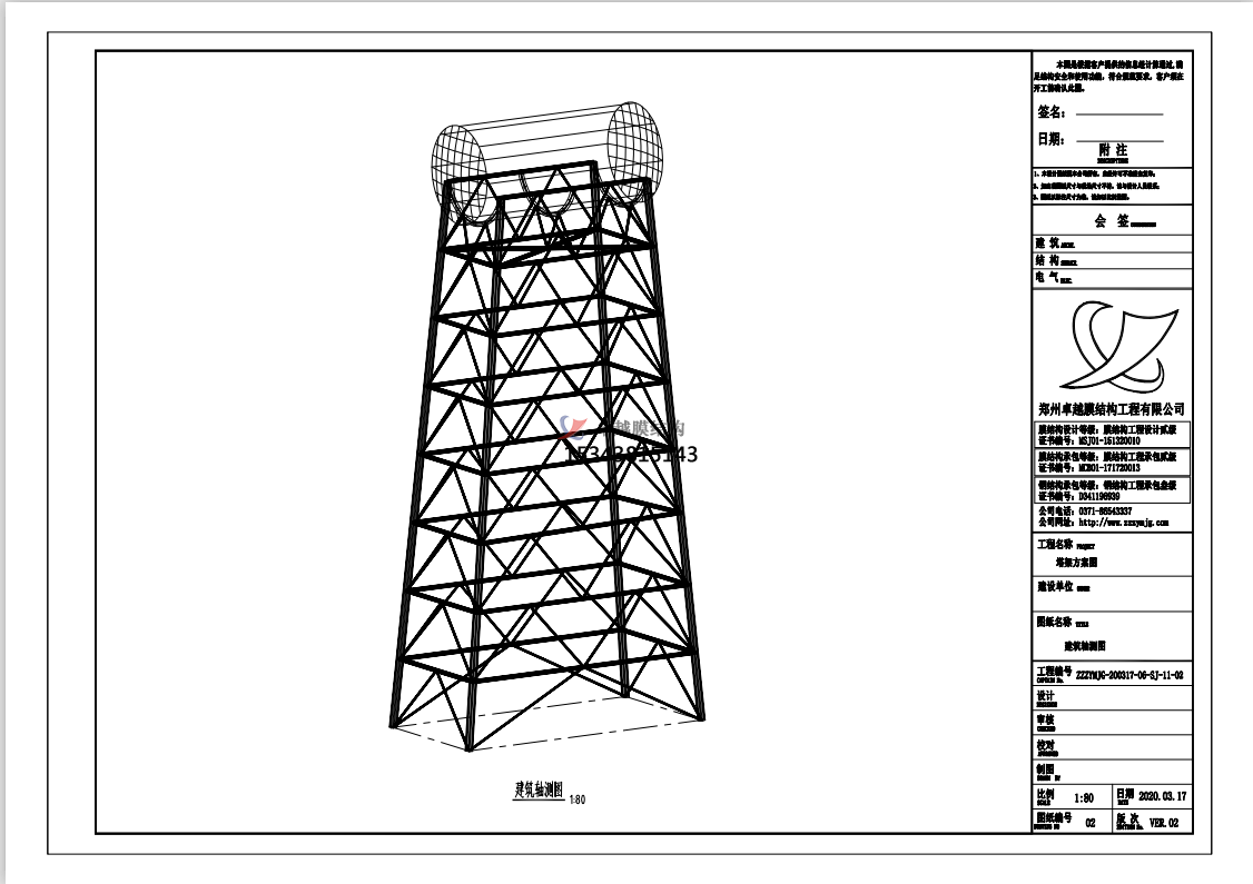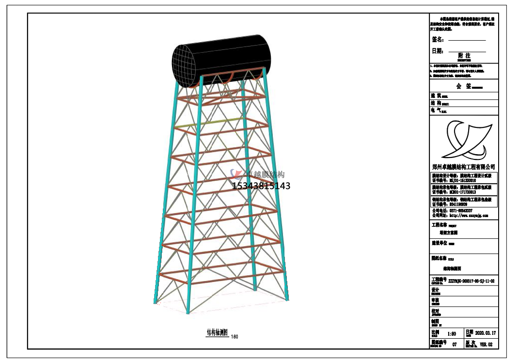 鋼結(jié)構(gòu)水塔三維模型圖,水塔一般居民區(qū)里蓄水作用,有些還是水廠生產(chǎn)工藝的一個重要組成部分。用于儲水和配水的高聳結(jié)構(gòu),用來保持和調(diào)節(jié)給水管網(wǎng)中的水量和水壓。主要由水柜、基礎和連接兩者的支筒或支架組成。在工業(yè)與民用建筑中,水塔是一種比較常見而又特殊的建筑物。它的施工需要特別精心和講究技藝,如果施工質(zhì)量不好,輕則造成永久性滲漏水,重則報廢不能使用。
