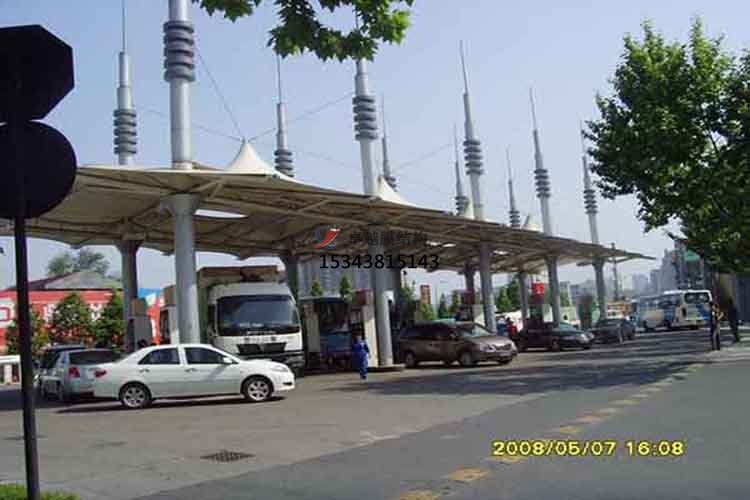 由于其自重輕,抗震性能對比好;膜結(jié)構(gòu)屬柔性結(jié)構(gòu),能夠忍受很大的位移,膜結(jié)構(gòu)加氣站罩棚不易整體坍毀;且膜資料一般都是阻燃資料,也不易形成火災(zāi)。膜結(jié)構(gòu)加油站廠家