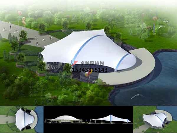 張拉膜結(jié)構(gòu)可以使建筑師設(shè)計(jì)出各種張力自平衡、復(fù)雜生動(dòng)的空間形式。一天之內(nèi),隨著光線的變化,濟(jì)南膜結(jié)構(gòu)雕塑通過(guò)光影呈現(xiàn)出不同的形態(tài)。日出日落時(shí),低入射角的光線將突出屋頂?shù)那屎透〉裥Ч.?dāng)太陽(yáng)處于遠(yuǎn)地點(diǎn)時(shí),薄膜結(jié)構(gòu)的流線邊界將在地面上投射出彎曲的陰影通過(guò)膜材料的透光和反射,設(shè)計(jì)出的人工光也可以使膜結(jié)構(gòu)成為光雕塑。