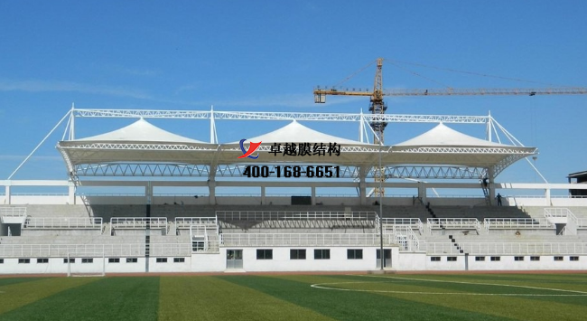 膜結構看臺,周口體育場膜結構看臺頂棚,膜結構看臺雨棚,操場主席臺遮陽棚等張拉形式膜結構的先行者是德國的奧托(F.Otto),他在1955年設計的張拉膜結構跨度在25m左右,用于聯(lián)合公園多功能展廳。