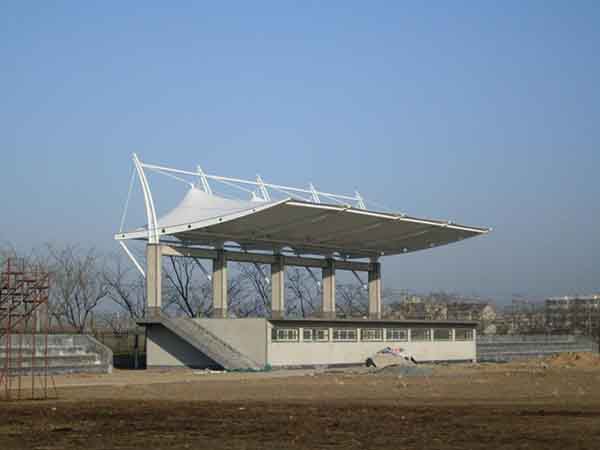 張拉膜看臺(tái)主要用于各類地方體育場主席臺(tái)雨棚,各類學(xué)校體育場看臺(tái)雨棚遮蓋,我公司是國內(nèi)較早從事大懸挑張拉膜結(jié)構(gòu)看臺(tái)設(shè)計(jì)施工的專業(yè)廠家,下面介紹一下我們在紹興市周邊縣市完工的一些張拉膜看臺(tái)設(shè)計(jì)施工案例,我公司先后在紹興周邊承接了紹興文理學(xué)院張拉膜看臺(tái)雨棚、紹興職業(yè)技術(shù)學(xué)院張拉膜看臺(tái)罩棚、浙江農(nóng)業(yè)商貿(mào)職業(yè)學(xué)院張拉膜看臺(tái)遮陽棚等設(shè)計(jì)施工項(xiàng)目,簡介如下:
