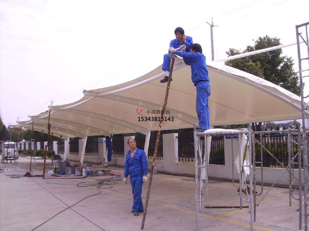 膜結(jié)構(gòu)的停車棚是解決小區(qū)停車難的問題, 膜材料的涂層是采用的是PVc樹脂,由于是隨著使用的期長,PVc樹脂中的塑性劑是會移到膜材料的表面而黏著空氣及雨水中的臟物使表面的是變臟,而一旦的是被黏著的臟物就很難清洗掉。