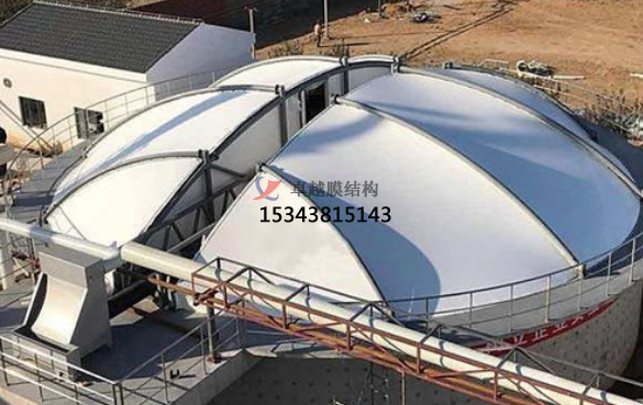 目前,污水池密封可采用的設(shè)計方案: 鋼支撐反吊膜、無骨架密封集氣罩、 懸索反吊膜等不同的設(shè)計方案,每種設(shè)計方案材料的用量都會有很大區(qū)別。一般采用鋼支撐反吊膜的較多,跨度太大時可以選擇無骨架密封集氣置、懸索反吊膜等解決方案。