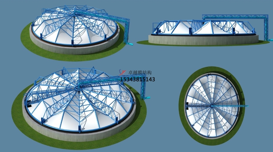 鋼結(jié)構(gòu)制作和膜體的加工都在工廠進(jìn)行,加工質(zhì)量得到可靠保障?,F(xiàn)場安裝時間短,減少了對場地的占用。尤其是舊池體改造項目可采取結(jié)構(gòu)整體吊裝,不影響池體內(nèi)部的設(shè)備運轉(zhuǎn)。